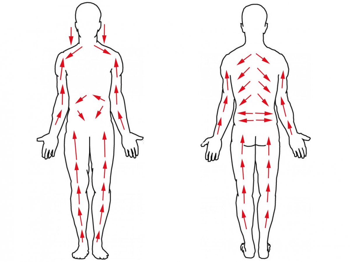 - Brush once over every part of the body surface except the face, one clean sweep is all you need. (don’t brush back and forth, circular or scrubbing, if your skin turns red you are brushing too hard, a light flush of the skin is normal). It takes less than 1-2 minutes to brush your whole body if you are doing it correctly.